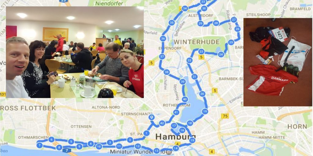 Turen startede fra Langeskov lørdag formiddag, så der var god tid til at hente løbenummer og samtidigt forbruge en masse penge på diverse løberelaterede ting og sager i den tilhørende Expo. Da der var to kvindelige løbere med, ja så gik der jo en rum tid med dette. Ikke en sten, sko eller beklædningsgenstand var urørt, men vi kom dog ud fra Expo’en inden den lukkede…